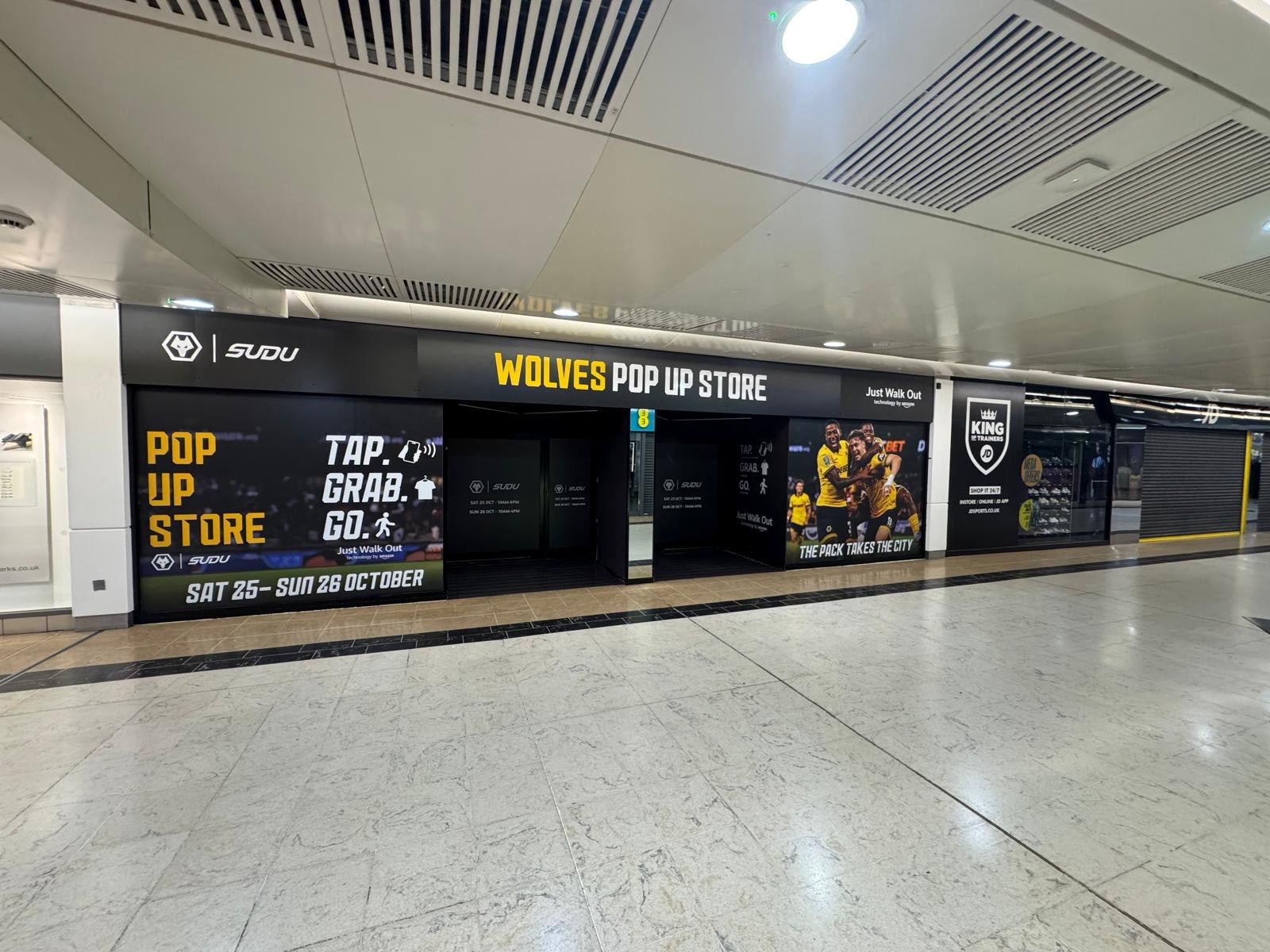 For 1 week only, SUDU’s pop-up store in Wolverhampton’s Mander Centre proudly showcased an exciting range of official Wolverhampton Wanderers merchandise in the heart of the city. Designed to capture the spirit and identity of the Wolves brand, the installation was a full-scale refurbishment delivered to Purcell Branding’s exacting standards and renowned attention to detail. Completed within an extremely limited timeframe, the project demonstrates precision, efficiency and quality craftsmanship, creating a dynamic retail space where fans can immerse themselves in gold and black and celebrate their team in style.